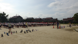 運動会に向けて2回目の全校練習が行われました。運動会の歌「ゴーゴーゴー」の練習では、白組、紅組どちらも元気よく歌いました。綱引きの練習は主に移動、並び方を確認しましたが、1・2年生は実際に競技を行いました。どちらも負けじと綱を引っ張り、今回は引き分け。本番が楽しみですね。