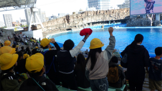 2年生が名古屋港水族館へ校外学習に出かけ、たくさんの海の生き物を観察したり、水族館で働く人を調べたりしました。また、イルカのパフォーマンスやシャチのトレーニング、ペンギンのフィーディングを観ることができて、充実した校外学習となりました。