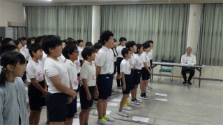 運動会の全校練習を行い、開会式と閉会式の流れを確認しました。元気よく運動会の歌を歌ったり、結果発表で大きな声で勝利を喜んだり、紅組白組ともに団結した姿が見られました。
