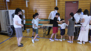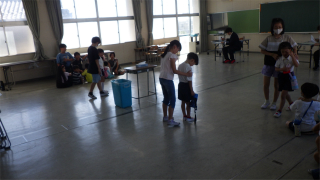 夏休みが明け、学校生活が再開しました。1時間目には夏休みを振り返る会がオンラインで行われ、表彰やTPPプログラミング大会に参加した児童による競技の実演がありました。校長先生からは運動場の遊具が新しくなったこと、非常階段・渡りろうかが工事によってきれいになったことが紹介され、9月からも笑顔いっぱい夢いっぱいの学校の実現できるようにメッセージが送られました。3時間目には地震・洪水を想定した避難訓練が行われ、高所への避難や人員の確認など、緊張感をもって取り組みました。