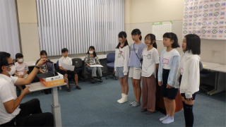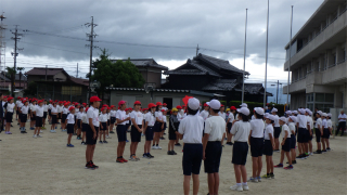 夏休みが明け、学校生活が再開しました。1時間目には夏休みを振り返る会がオンラインで行われ、表彰やTPPプログラミング大会に参加した児童による競技の実演がありました。校長先生からは運動場の遊具が新しくなったこと、非常階段・渡りろうかが工事によってきれいになったことが紹介され、9月からも笑顔いっぱい夢いっぱいの学校の実現できるようにメッセージが送られました。3時間目には地震・洪水を想定した避難訓練が行われ、高所への避難や人員の確認など、緊張感をもって取り組みました。